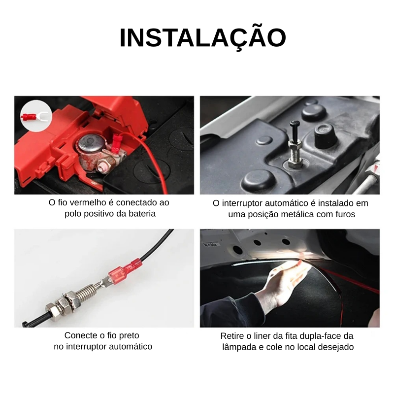 ✅ Praticidade Total – Liga e desliga automaticamente ao abrir e fechar o capô.