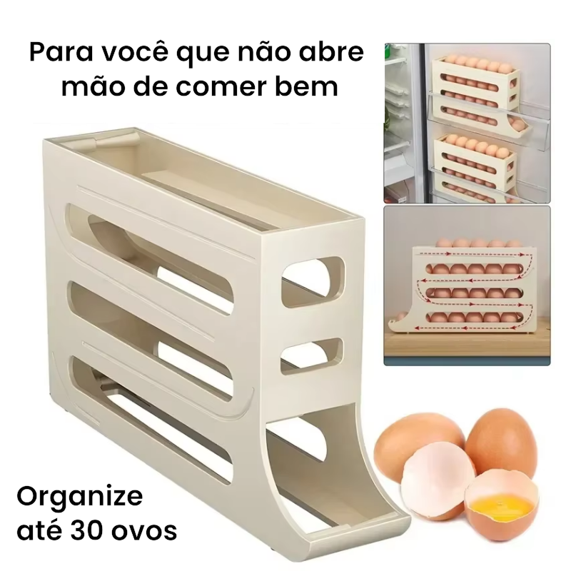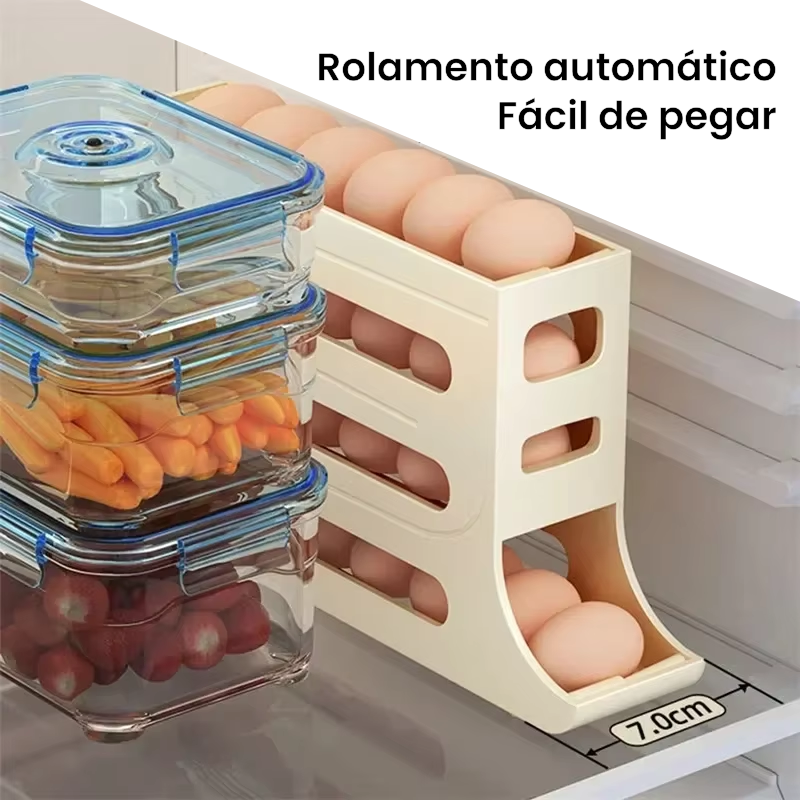 Com design moderno, rolamento automático e grande capacidade, ela deixa seus ovos sempre organizados, protegidos e fáceis de pegar.