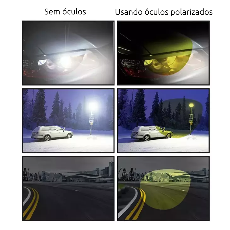 Lentes Polarizadas Antirreflexo – Reduz o brilho intenso de superfícies como água, neve e asfalto, garantindo visão clara e sem incômodos.