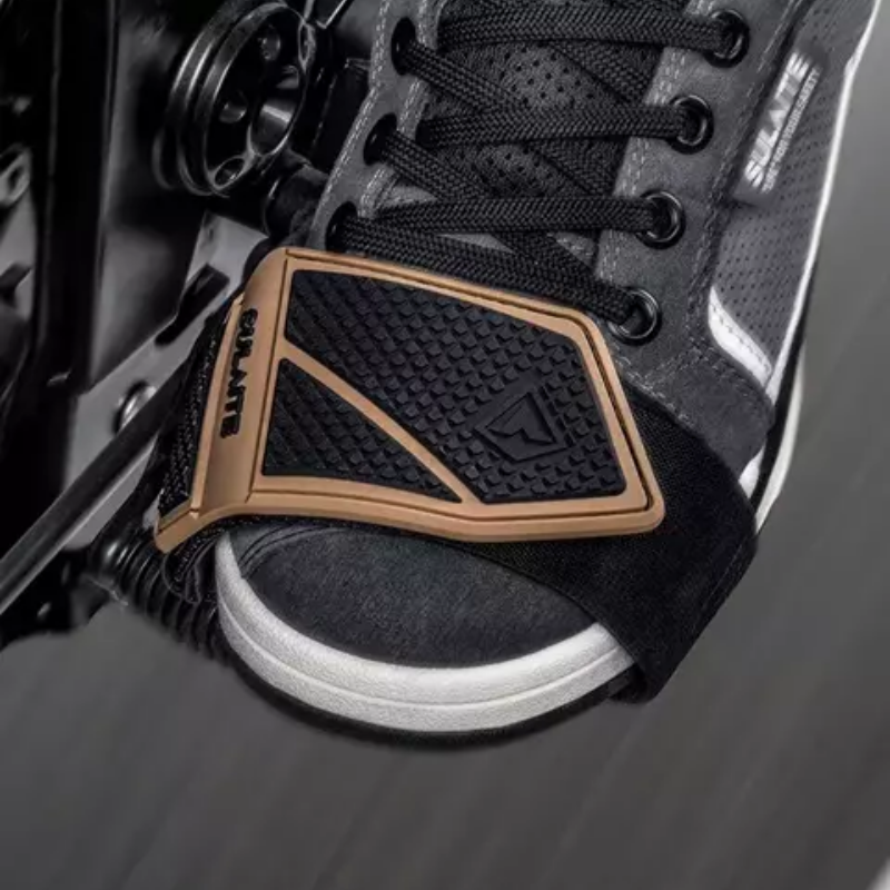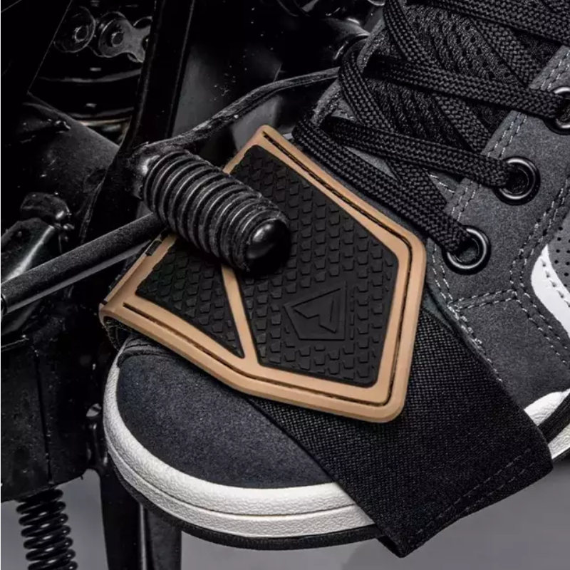 Feito com material resistente e de fácil ajuste, o MotoShield se adapta a diversos tipos de sapatos e botas, oferecendo proteção contra arranhões, sujeira e desgaste causados pelo câmbio da motocicleta.